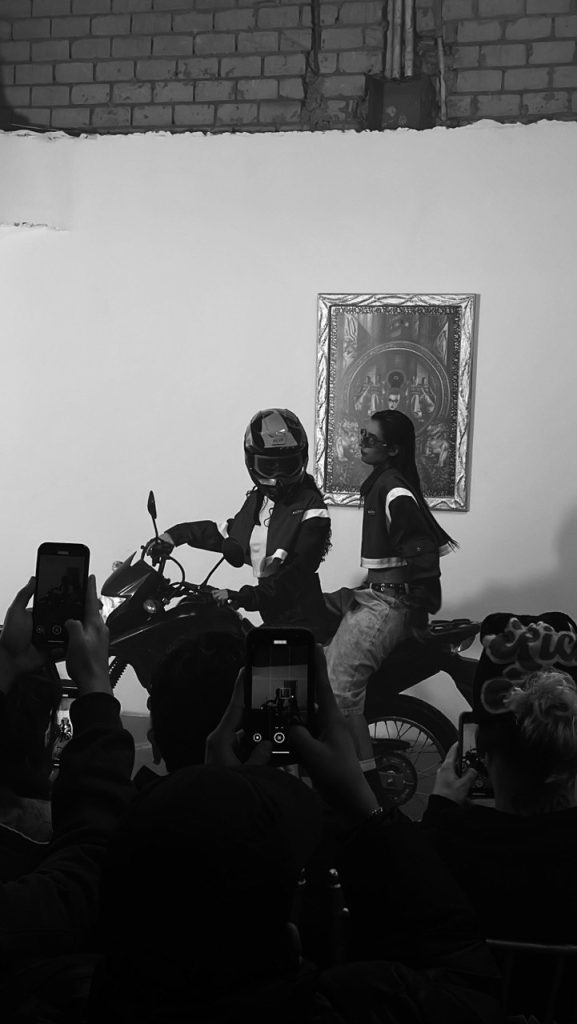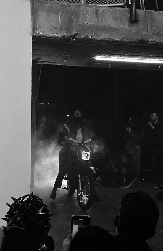 Uno de los momentos más impactantes fue la aparición de una moto en la pasarela. Esta simbolizaba movimiento congelado: avanzar sin perder la calma. Fue el clímax escenográfico del show.